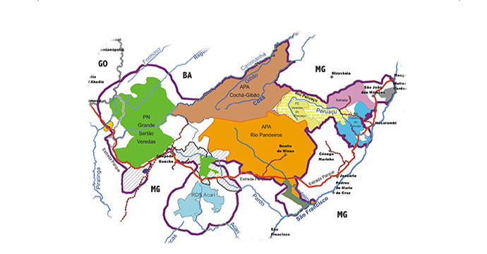 O Mosaico SVP foi oficialmente reconhecido pelo Ministério do Meio Ambiente (MMA) por meio da Portaria 128, de 24 de abril de 2009. É formado por 12 UCs e uma reserva indígena em 11 municípios no norte e noroeste de Minas e no município de Cocos, no sudoeste da Bahia, que se estendem pela região banhada pelo rio São Francisco e seus afluentes. Divide-se em três grandes núcleos: Grande Sertão Veredas (onde está o Parque Nacional GSV), Pandeiros e Peruaçu.